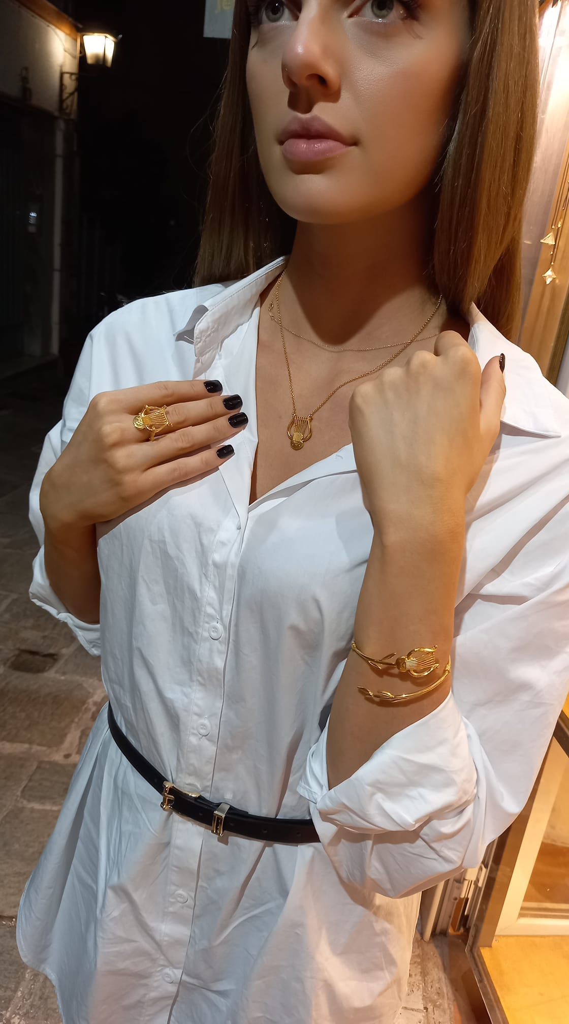 The lyre of Apollo with its 7 strings symbolizes the harmonization of man with Nature. 7 was considered a sacred number. Seven sacred planets, seven energy centers that we bring into harmony through pulse and vibration, as the name of God Apollo reveals to us.
