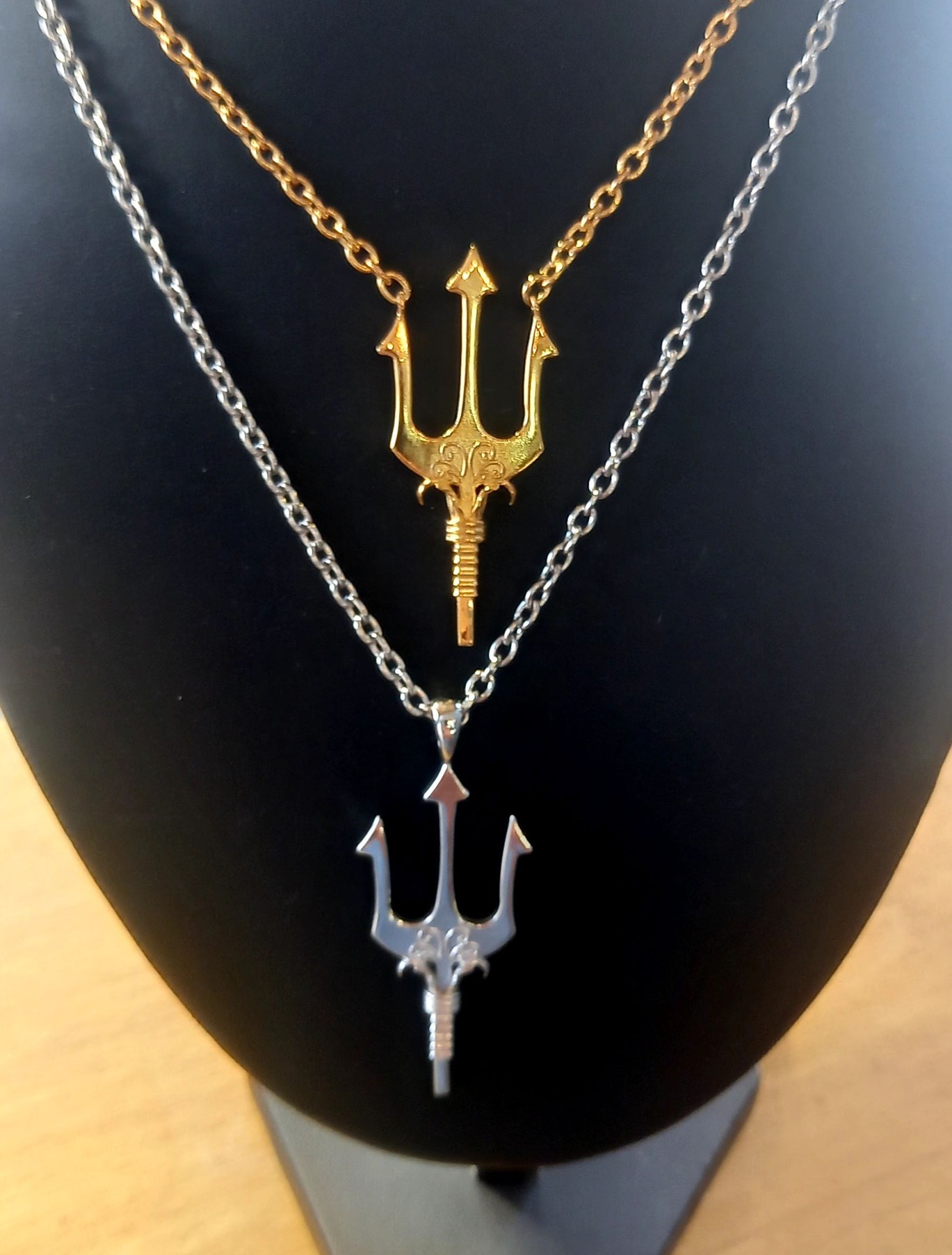 Silver pendant of the Trident of Poseidon with chain